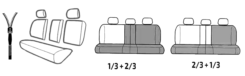 Husa pentru bancheta spate este fractionabila 1/3 si 2/3.