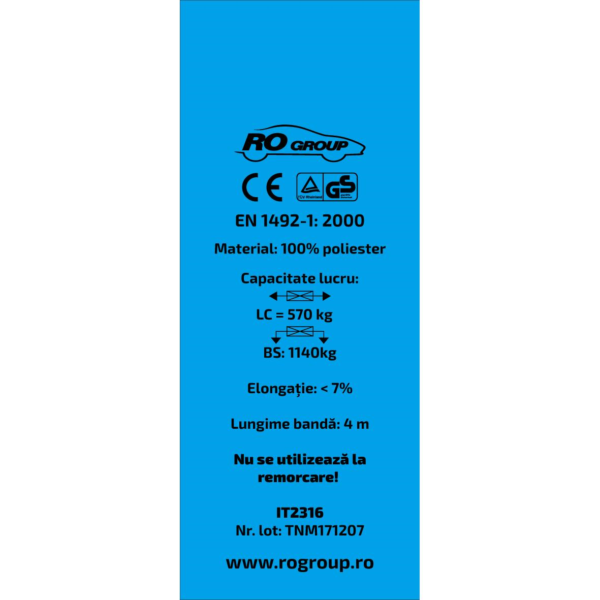 Chinga cu clichet Ro Group, 570 kg, 4 m - este un accesoriu necesar pentru ancorarea si fixarea diferitelor marfuri in interiorul sau pe portbagajul oricarui autovehicul.