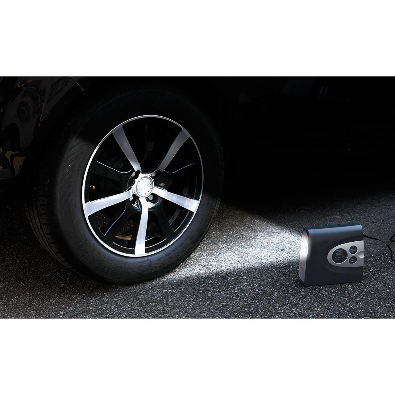 Poate fi alimentat la priza pentru bricheta, de 12V. Are un cablu de alimentare lung, asa ca nu va fi nicio problema la umflarea tuturor rotilor masinii. In plus, compresorul are ecran LCD care va afisa presiunea. Puteti seta cu usurinta presiunea dorita in roti iar compresorul se va opri automat la atingerea valorii setate de dvs. Rapid, puternic si foarte practic!
