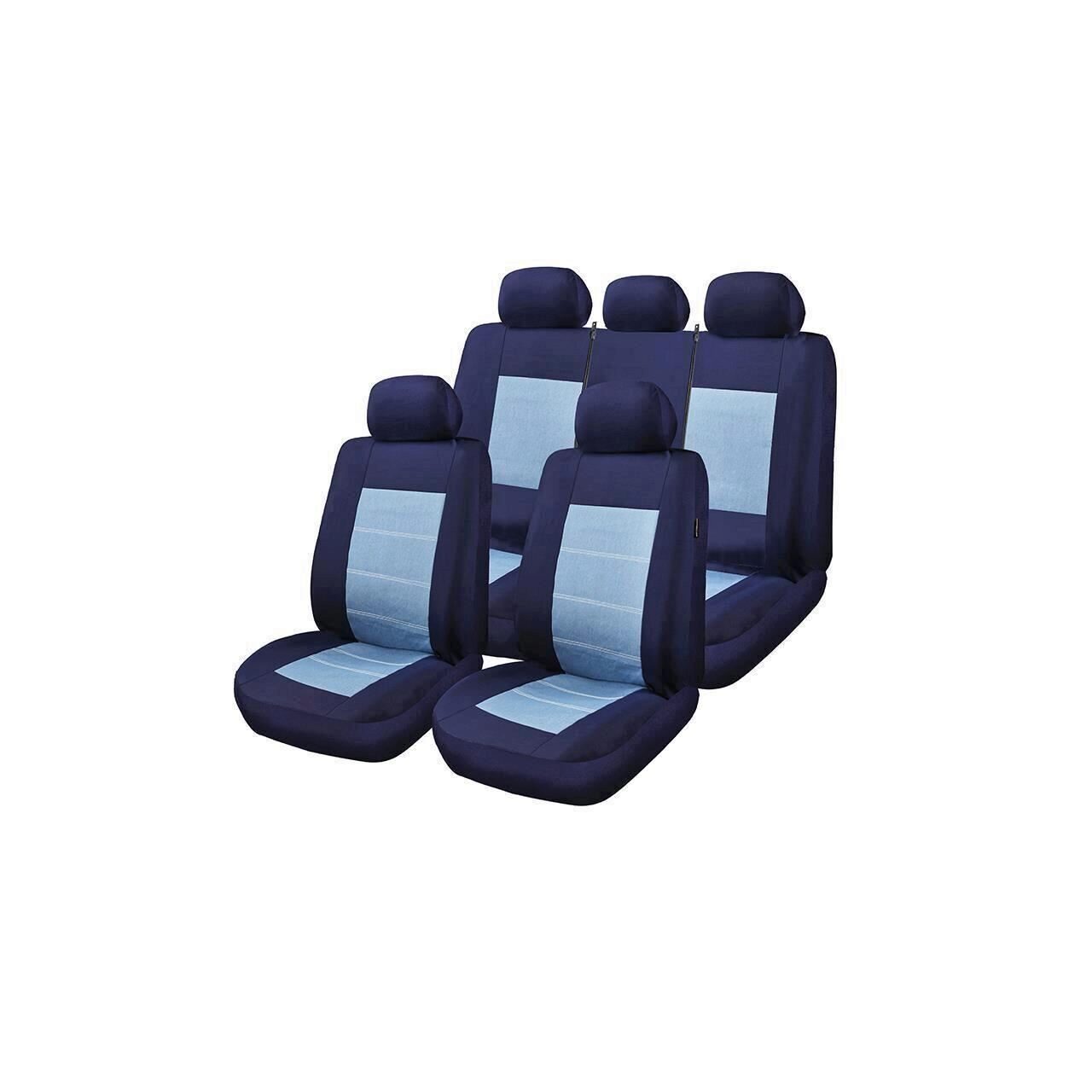 Huse Scaune Auto Isuzu Pick Up - RoGroup Blue Jeans, cu fermoare pentru bancheta rabatabila, 9 Bucati