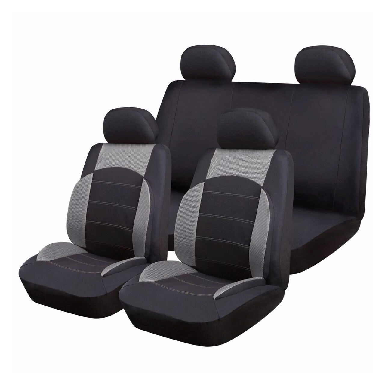 Set Huse Scaune Auto pentru Land Rover Discovery - RoGroup Sport Line Gri, cu fermoare pentru bancheta rabatabila, 9 bucati