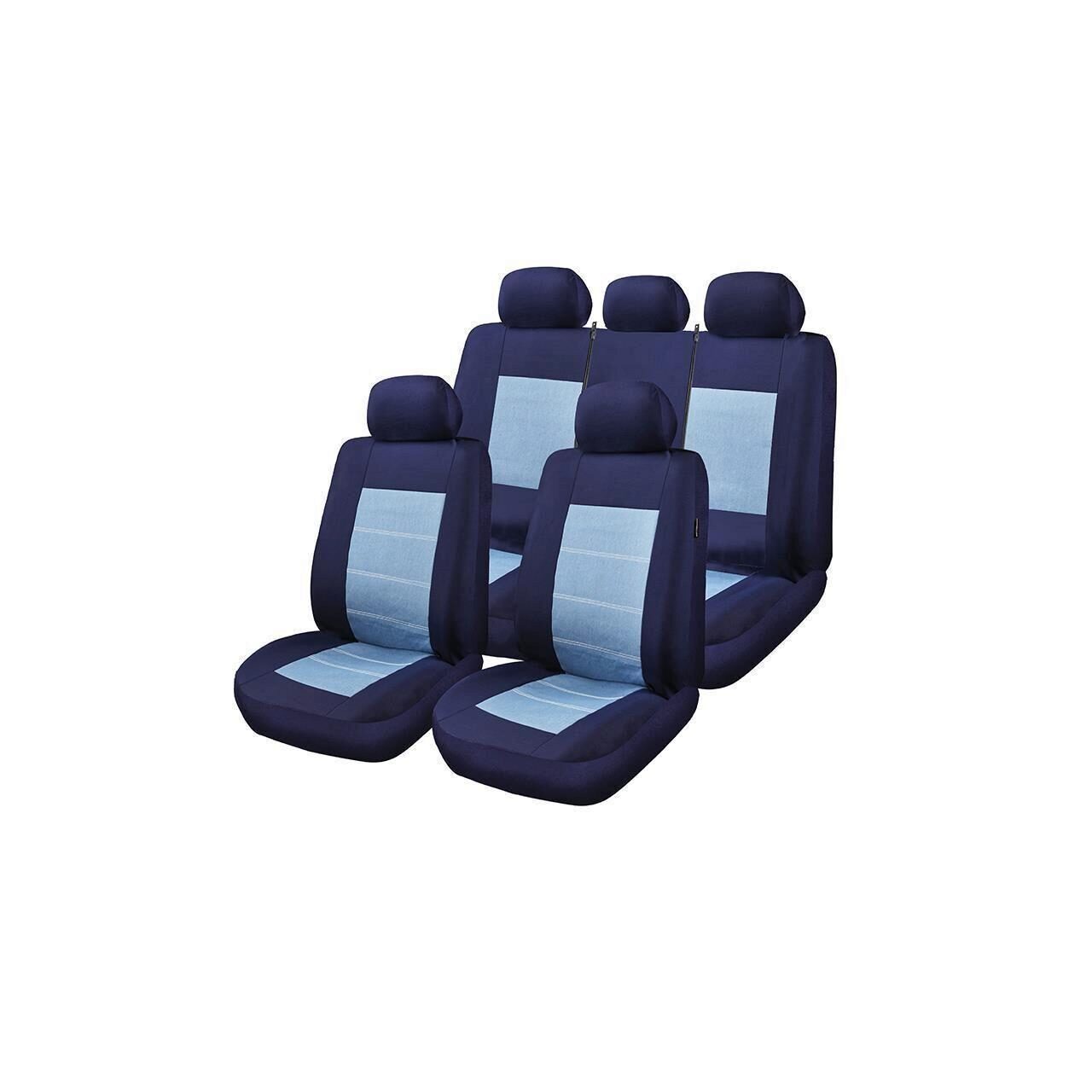 Set Huse Scaune Auto pentru Seat Ateca - RoGroup Blue Jeans, cu fermoare pentru bancheta rabatabila, 9 piese