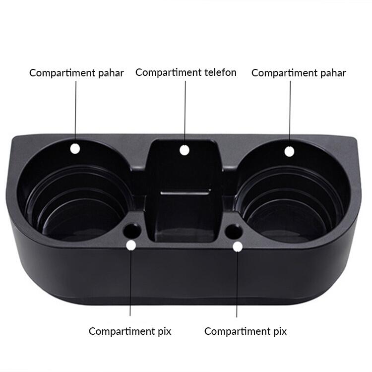 Se pozitioneaza intre consola centrala si scaunele din fata si se potriveste la majoritatea modelelor de autoturisme.