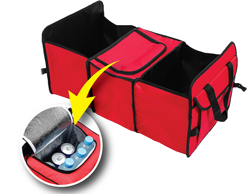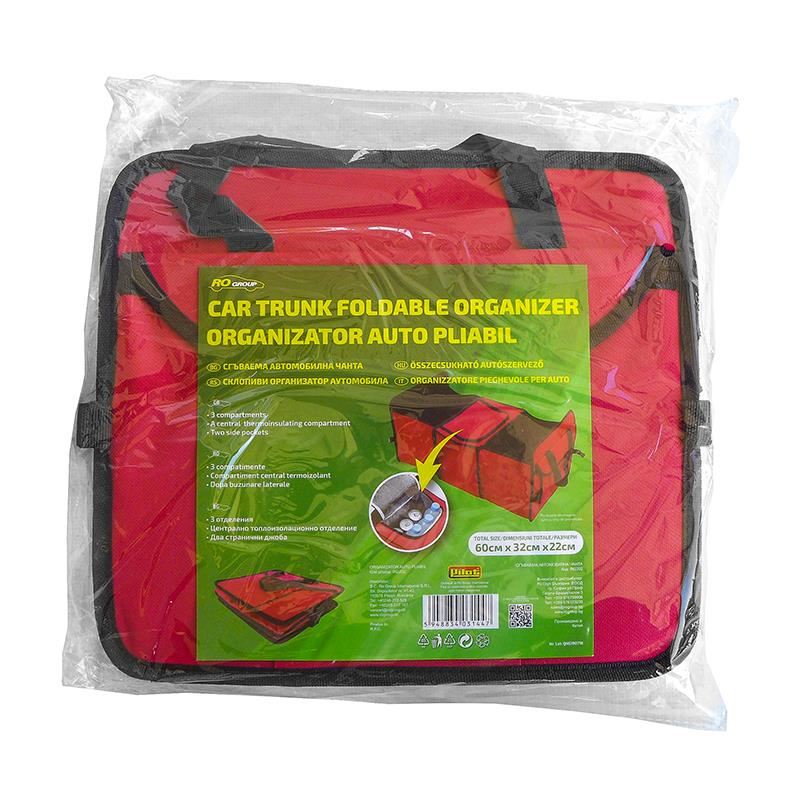 Geanta organizator ajuta la depozitarea diferitelor obiecte (trusa de prim ajutor, cablurile de pornire, kitul pentru depanari, cumparaturi, etc) in portbagajul autovehicului.