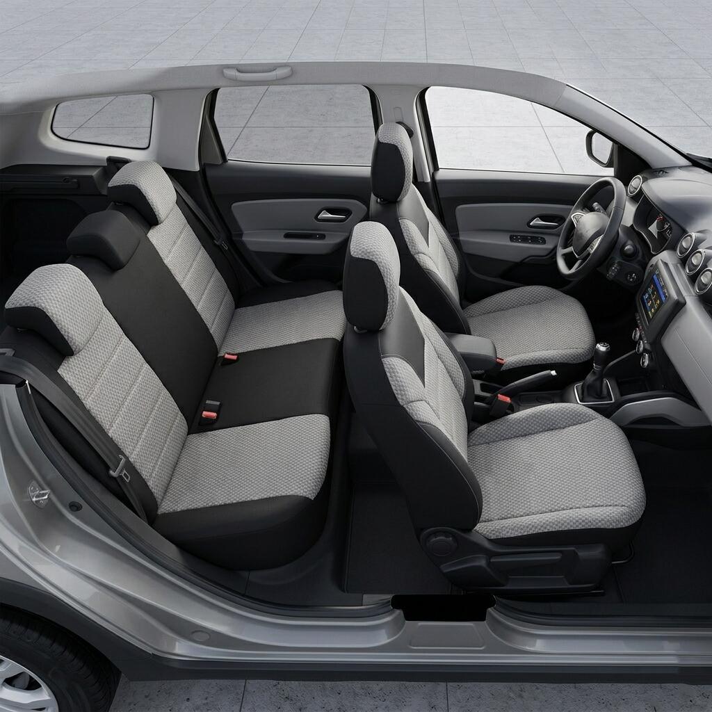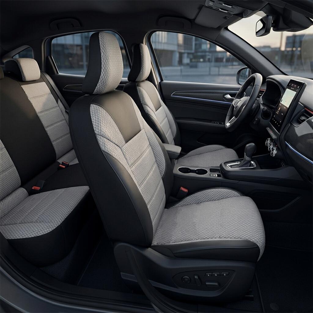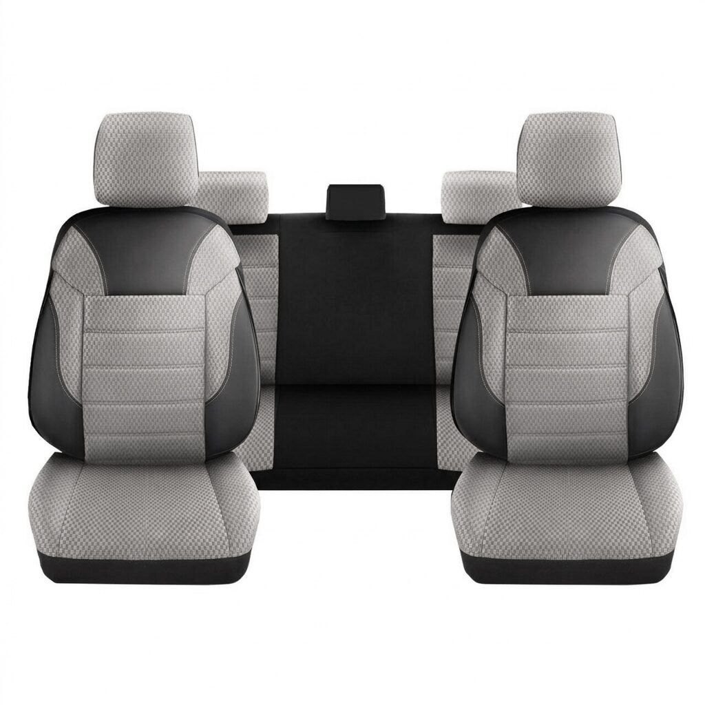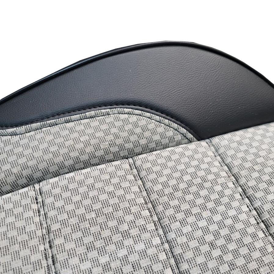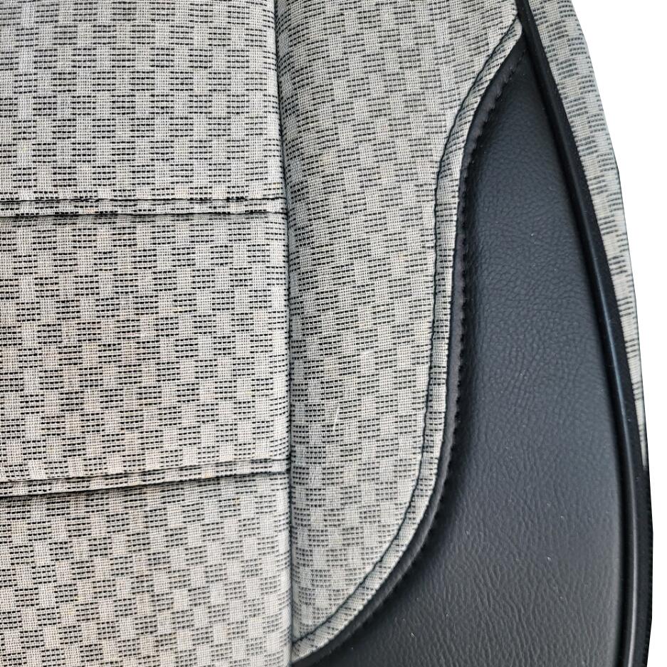 Set Huse Scaune Auto DeluxeBoss, stofa cu piele ecologica, pt bancheta rabatabila fractionata, negru cu bej, 11 bucati