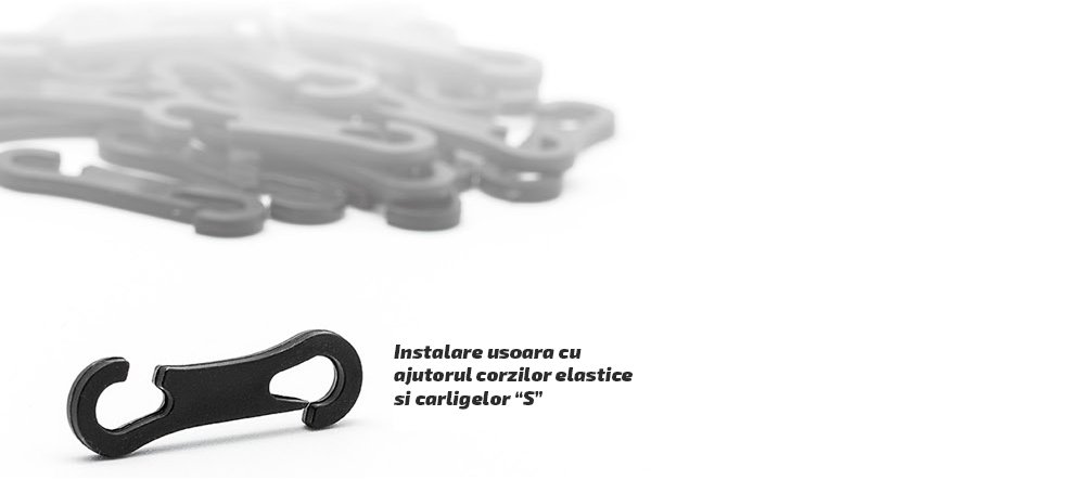 Instalare usoara cu ajutorul corzilor elastice si carligelor in forma de „S”
