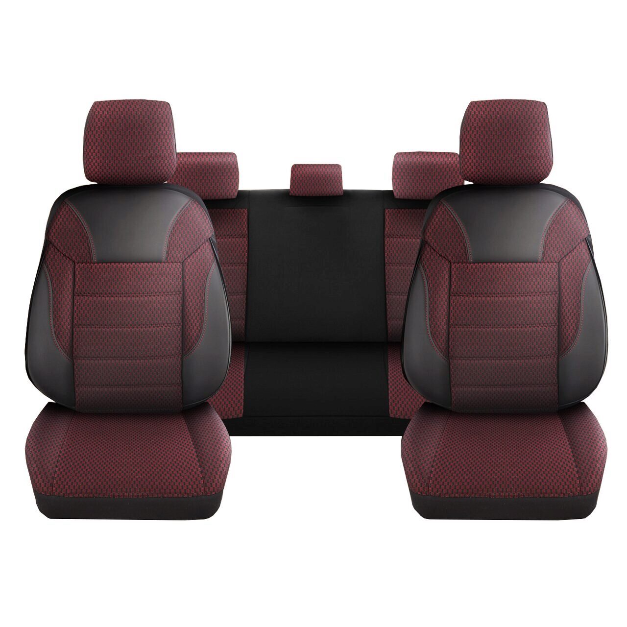 Set Huse Scaune Auto pentru Opel Antara - DeluxeBoss Classico, pentru bancheta rabatabila fractionata, 11 piese, negru rosu