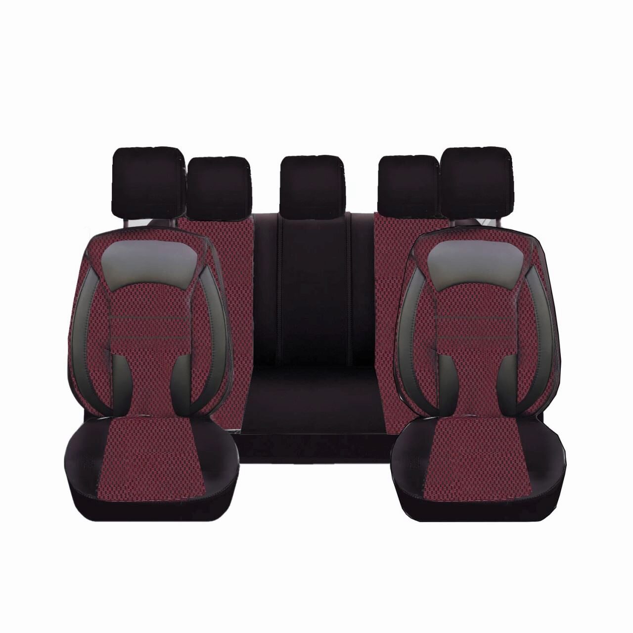 Set Huse Scaune Auto pentru Subaru Forester - DeluxeBoss, stofa cu piele ecologica, pt bancheta rabatabila fractionata, negru cu rosu, 11 piese