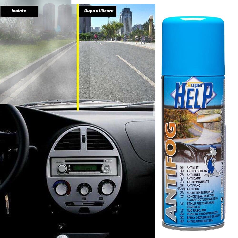 Spray-ul pentru dezaburire geamuri Help, furnizat de Ro Group, previne aburirea geamurilor in interiorul autoturismului.