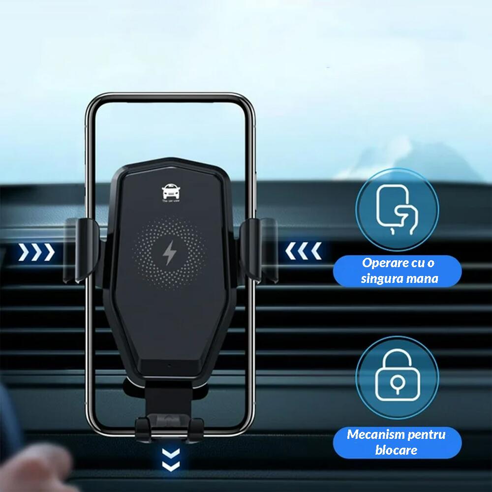 Suportul auto Siegbert integreaza functionalitatea unui sistem de fixare robust cu tehnologia de incarcare wireless, oferind o solutie "2-in-1" eficienta pentru habitaclul masinii. Proiectat pentru montarea discreta pe grila de ventilatie, acest dispozitiv utilizeaza un mecanism gravitational inteligent care asigura blocarea automata si sigura a smartphone-ului prin simpla sa asezare in suport, permitand simultan alimentarea bateriei cu o putere optimizata de pana la 15W in timpul deplasarii.